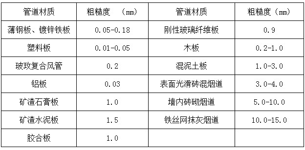 不同材質(zhì)的管道內(nèi)壁的絕對粗糙度系數(shù)見下表、