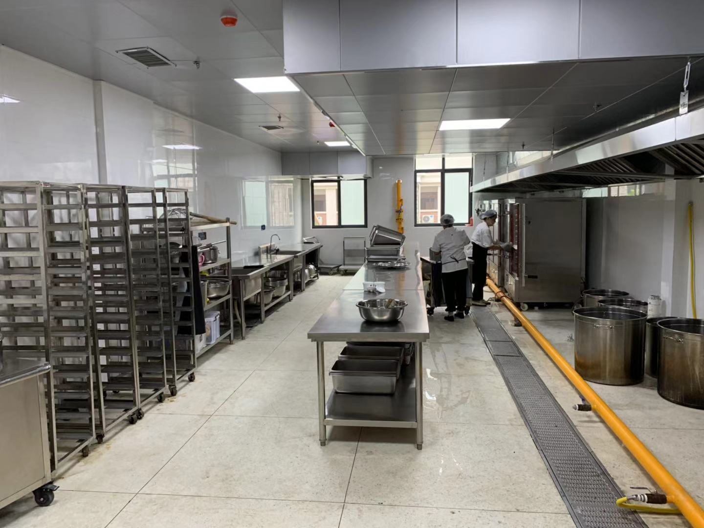 以粗加工間為例,原料存放需要菜架、冰柜;摘菜需要工作臺(tái)案;洗菜需要水池。這些環(huán)節(jié)都應(yīng)考慮并做出具體的安排。根據(jù)需要處理的食料類別,還應(yīng)有分類加工的機(jī)械設(shè)備,需要考慮計(jì)算加工量,并配備合適的設(shè)備。每個(gè)工作間、每個(gè)專業(yè)崗位都有需要考慮分析的環(huán)節(jié)細(xì)節(jié)。