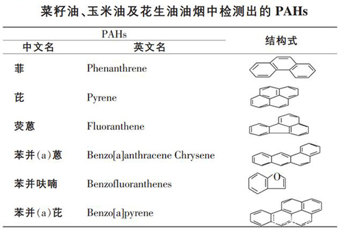 再來看PAHs,PAHs即多環(huán)芳烴。在此前的報道中,就曾指出食用油在高溫過程中會產(chǎn)生具有生殖毒性、致癌性及致突變型的多環(huán)芳烴有機(jī)物,但由于不確定物質(zhì)的具體成分,不少人也是半信半疑。但隨著苯并芘、二苯并蒽等物質(zhì)在菜籽油中的檢出,人們陸續(xù)開始認(rèn)識到油煙中PAHs的真面目。根據(jù)對菜籽油、花生油以及玉米油的檢測,油煙中的PAHs主要包括菲、芘、熒蒽、苯并蒽、苯并呋喃以及苯并芘等,其中花生油油煙中的PAHs含量最高,達(dá)到了22.8ug/m3,其次是玉米油,含量為5.50ug/m3,菜籽油僅為1.08ug/m3。而玉米油油煙中除了上述物質(zhì),還包含了苯并呋喃。