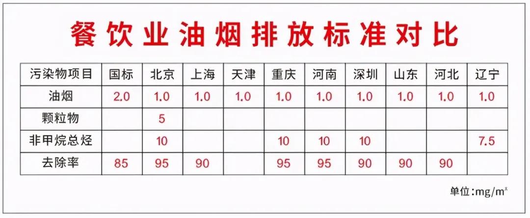 而國內(nèi)一些地區(qū)油煙排放標準不允許排放濃度超過1.0mg/m3,北上廣深天津、重慶、河南等地區(qū),嚴格了一倍,安裝的油煙凈化器凈化效率達到90%—95%以上。