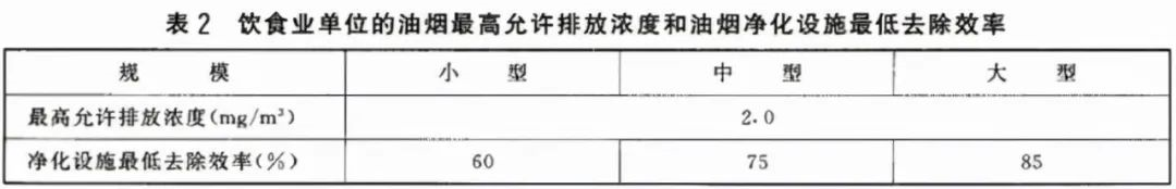 在我國(guó)對(duì)油煙排放有著嚴(yán)格的限制,國(guó)標(biāo)《飲食業(yè)油煙排放標(biāo)準(zhǔn)(GB18483-2001)》規(guī)定,油煙排放濃度不得超過2.0mg/m3,相應(yīng)凈化系統(tǒng)的凈化效率大型系統(tǒng)不得低于85%,中型系統(tǒng)不得低于75%,小型系統(tǒng)不得低于60%。