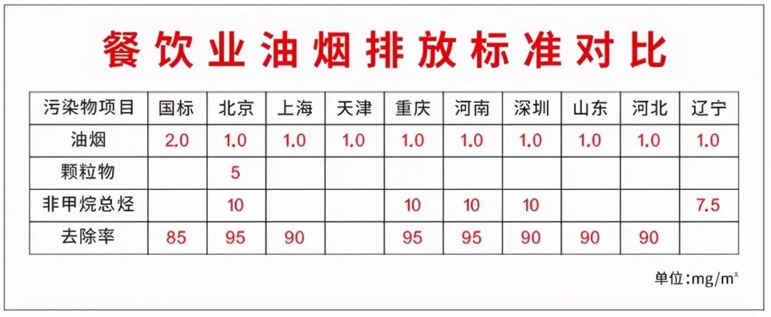 而國(guó)內(nèi)一些地區(qū)油煙排放標(biāo)準(zhǔn)不允許排放濃度超過1.0mg/m3,北上廣深天津、重慶、河南等地區(qū),嚴(yán)格了一倍,安裝的油煙凈化器凈化效率達(dá)到90%—95%以上。