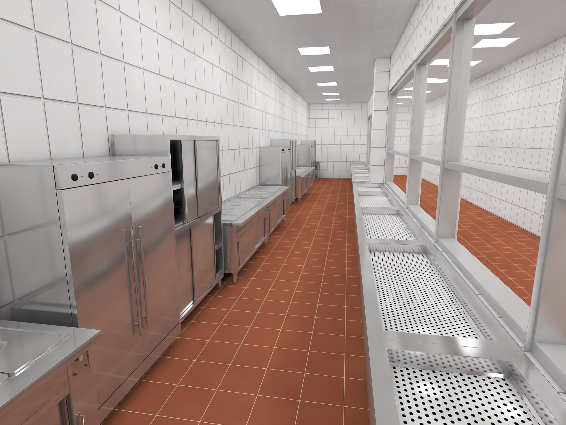 食堂廚房最重要的安全與衛(wèi)生方面,也需要地面與墻壁的配合保證。地面需要使用防滑瓷磚、防腐 、容易清潔;墻面用平滑的白色瓷磚或其它顏色淡雅的瓷磚,與室內(nèi)光線協(xié)調(diào),并且易于清潔。食堂的廚房一般都有快餐座位,配套設(shè)施有:超市、水果店、飲品店等,這些配套設(shè)施都集中在飯廳旁邊,方便人們消費。