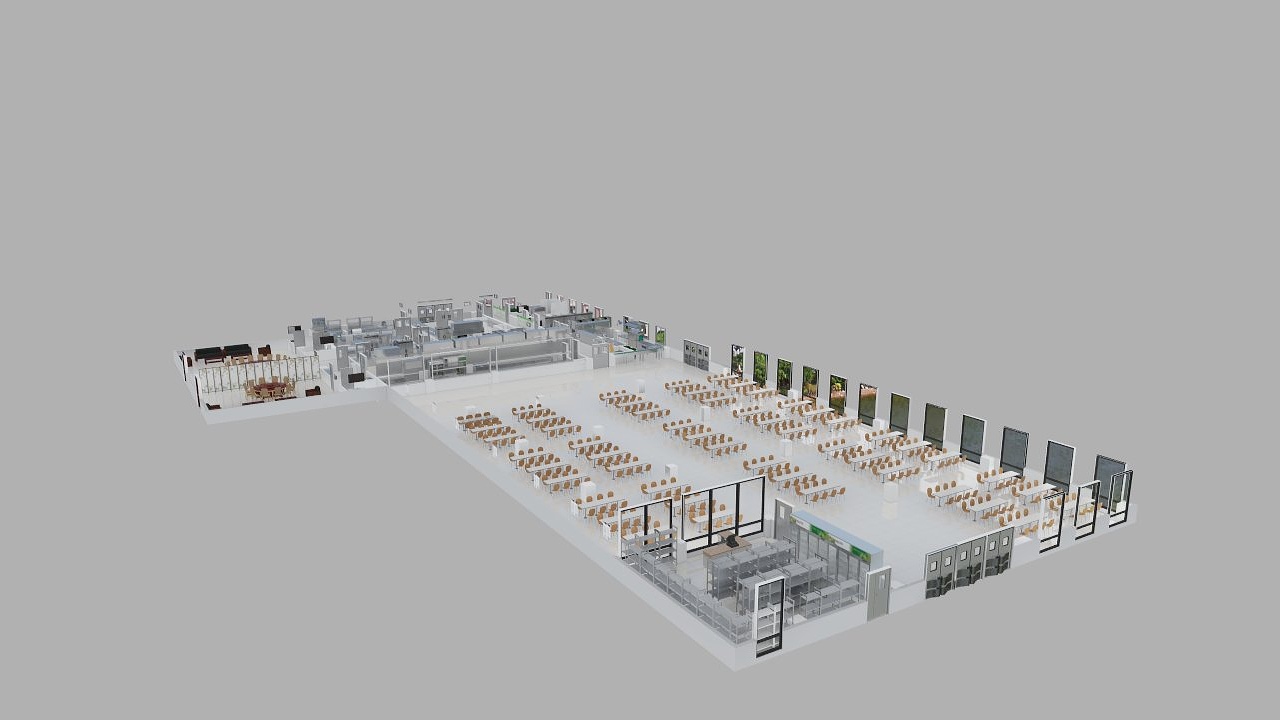 主食蒸煮間濕氣大,而主食粗加工間、煎烤間需要環(huán)境干燥,因此可以設計專門的蒸煮間、煎烤間,便于溫度、濕度控制,有效減少環(huán)境干擾。