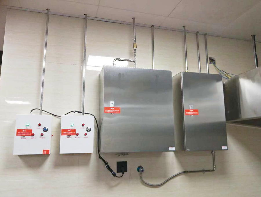 以前的廚房滅火系統(tǒng)是指廚房建筑本身的滅火保護(hù)系統(tǒng),常見的煙霧和溫度檢測系統(tǒng)以及噴水系統(tǒng)。因為廚房火災(zāi)大多是由于不受控制地使用爐火引起的,爐火點燃了引擎蓋和排煙管中的油污,導(dǎo)致難以撲滅的天火。因此,廚房的熱廚房加工設(shè)備“灶臺、油煙機(jī)、排煙管”成為廚房的重點保護(hù)對象;對廚房熱廚房加工設(shè)備實現(xiàn)“局部關(guān)鍵滅火保護(hù)”的系統(tǒng)稱為“廚房設(shè)備自動滅火裝置”。它和廚房滅火系統(tǒng)是兩個獨立的、互不干擾的滅火保護(hù)系統(tǒng),具有不同的保護(hù)對象。