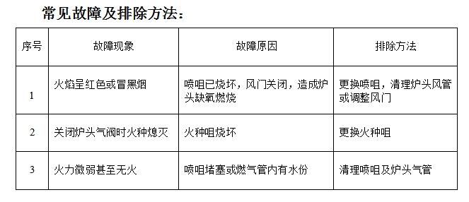 ⑤ 遇使用中熄火時,應(yīng)分別關(guān)閉爐頭燃氣閥火種閥,排除殘燃氣后再重新點火操作;