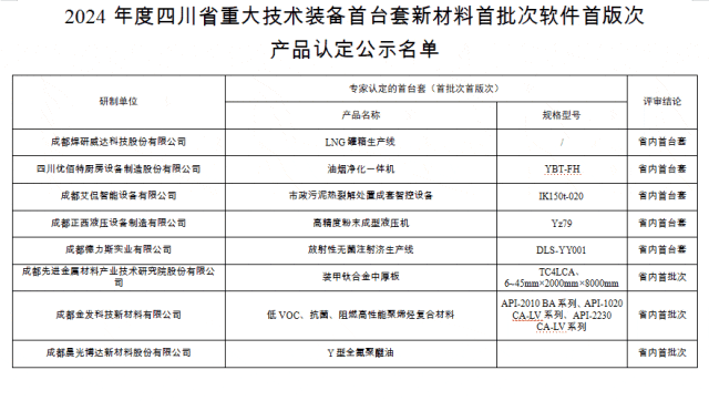 近日, 四川省經(jīng)濟和信息化廳公布了《2024年度四川省重大技術(shù)裝備首臺套新材料首批次軟件首版次產(chǎn)品認定公示名單》,優(yōu)佰特公司成功入圍。