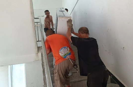 當(dāng)貨車到達(dá)工地后,無(wú)論現(xiàn)場(chǎng)的安裝條件怎樣的困難,也無(wú)論工地的溫度有多高,我們都會(huì)想盡辦法,把設(shè)備卸下來(lái),然后再搬進(jìn)廚房工地。當(dāng)你在空調(diào)室抱怨空調(diào)不制冷時(shí),在工地現(xiàn)場(chǎng)的師傅們可是在滾燙的天氣下大汗淋漓的搬運(yùn)和安裝設(shè)備,衣服褲子全都濕透了。