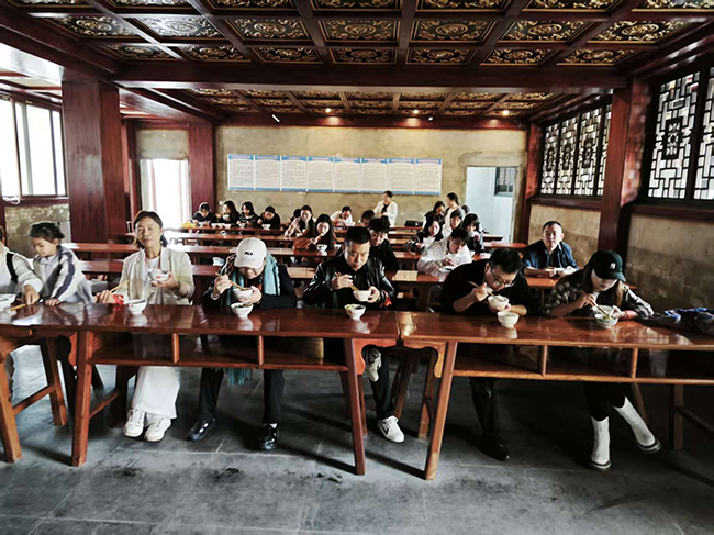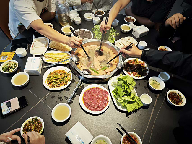 這也給了同事們品嘗沿途美食的機會。當快到12點時,全體人員便從高速路出來,在一家牛肉館品嘗當?shù)孛朗?。全體銷售部的人員齊聚一堂,有說有笑,好不熱鬧鬧。